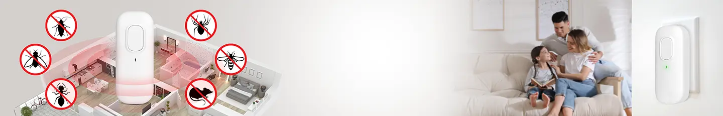The BuzzAway is an ultrasonic electronic repellent designed to rid your home of pests such as mice, cockroaches, ants, spiders, and other insects, in a completely chemical-free manner. The device operates by emitting ultrasonic waves that disrupt the pests' senses, forcing them to flee the environment within days and permanently. Its installation is extremely simple: just plug it into the outlet, which takes about 5 seconds. The device activates instantly, with the ultrasonic pulses starting to repel within 90 seconds, providing silent and continuous 24/7 protection.